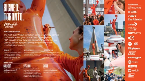 It was a historic moment, the first WNBA game coming to Canada. We created a larger-than-life monument to instigate a groundswell of fan excitement. The monument toured around the city, letting everyone sign their support right onto the icon of the WNBA herself.